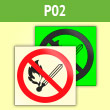 Знак P02 «Запрещается пользоваться открытым огнем и курить» (фотолюминесцентная пленка ГОСТ 34428-2018, 150х150 мм)