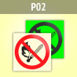 Знак P02 «Запрещается пользоваться открытым огнем и курить» (фотолюминесцентный пластик ГОСТ 34428-2018, 200х200 мм)