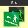 Знак E16 «Направление к эвакуационному выходу по лестнице вверх (левосторонний)» (фотолюминесцентный пластик ГОСТ 34428-2018, 200х200 мм)