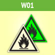 Знак W01 «Пожароопасно! легковоспламеняющиеся вещества» (фотолюминесцентная пленка ГОСТ 34428-2018, сторона 200 мм)