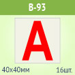 Наклейка буква «А» на аварийный светильник, B93 (пленка, 40х40 мм, блок 16 штук, 190х190 мм)