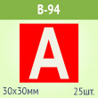 Наклейка буква «А» на аварийный светильник, B94 (пленка, 30х30 мм, блок 25 штук, 170х170 мм)