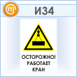 Знак «Осторожно! Работает кран», И34 (пластик, 400х600 мм)