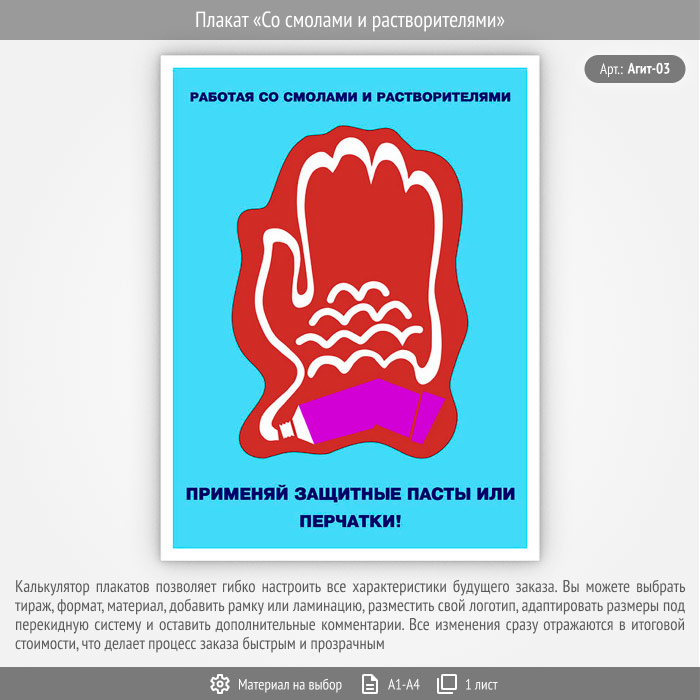 Плакат «Со смолами и растворителями» (Агит-03, 1 лист) в Томске купить