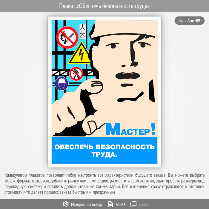 Плакат «Обеспечь безопасность труда» (Агит-09, 1 лист) в Томске купить