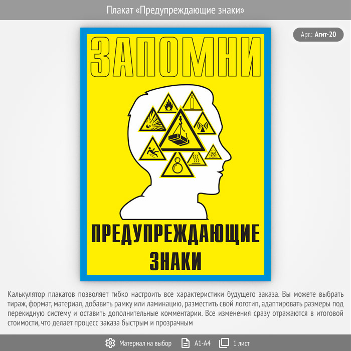 Плакат «Предупреждающие знаки» (Агит-20, 1 лист) в Томске купить