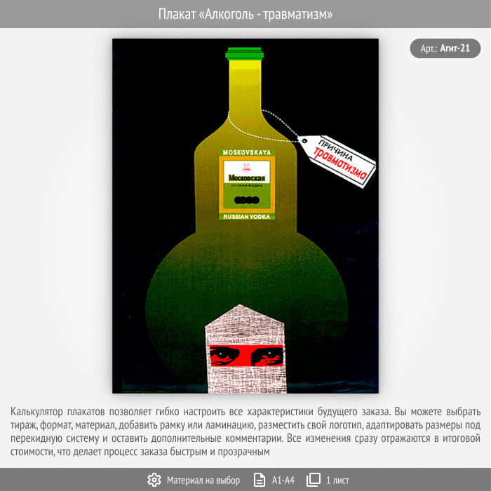 Плакат «Алкоголь - травматизм» (Агит-21, 1 лист) в Томске купить