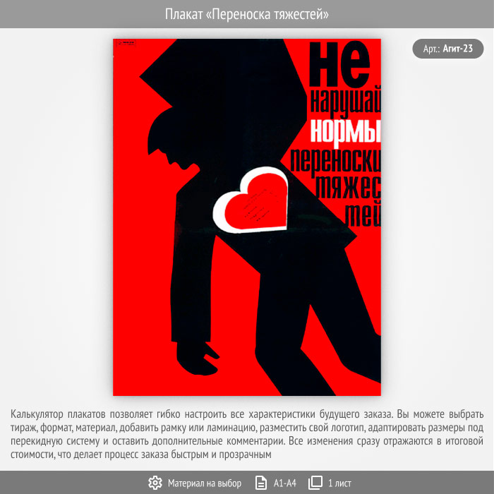Плакат «Переноска тяжестей» (Агит-23, 1 лист) в Томске купить
