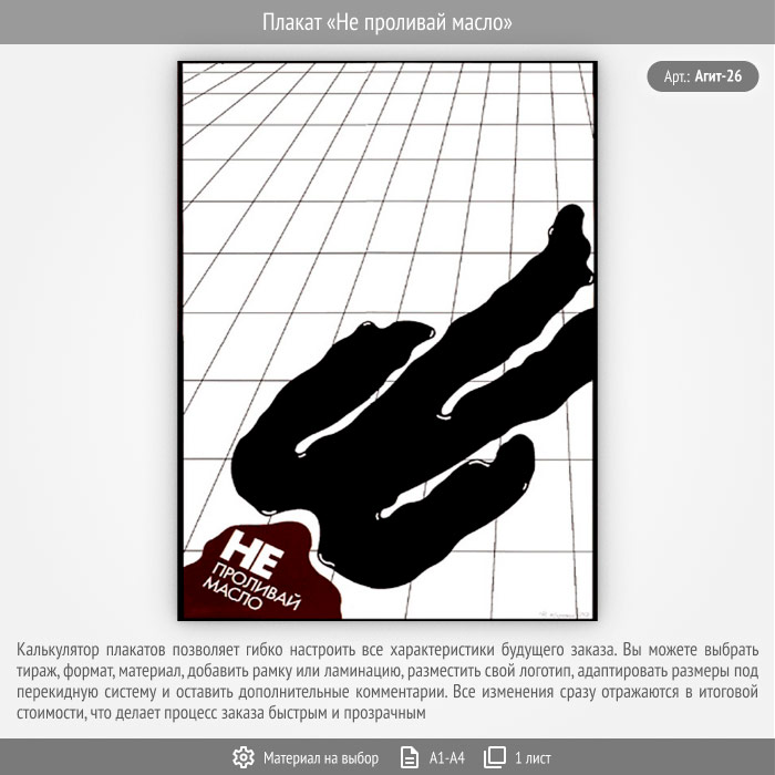 Плакат «Не проливай масло» (Агит-26, 1 лист) в Томске купить
