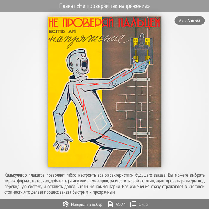 Плакат «Не проверяй так напряжение» (Агит-33, 1 лист) в Томске купить