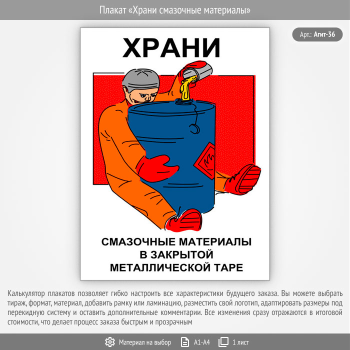 Плакат «Храни смазочные материалы» (Агит-36, 1 лист) в Томске купить