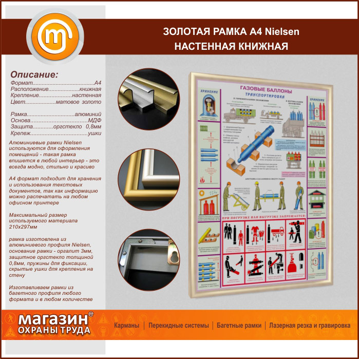 Багетная настенная рамка «Nielsen» А4 формата, книжная, матовое золото в Томске купить