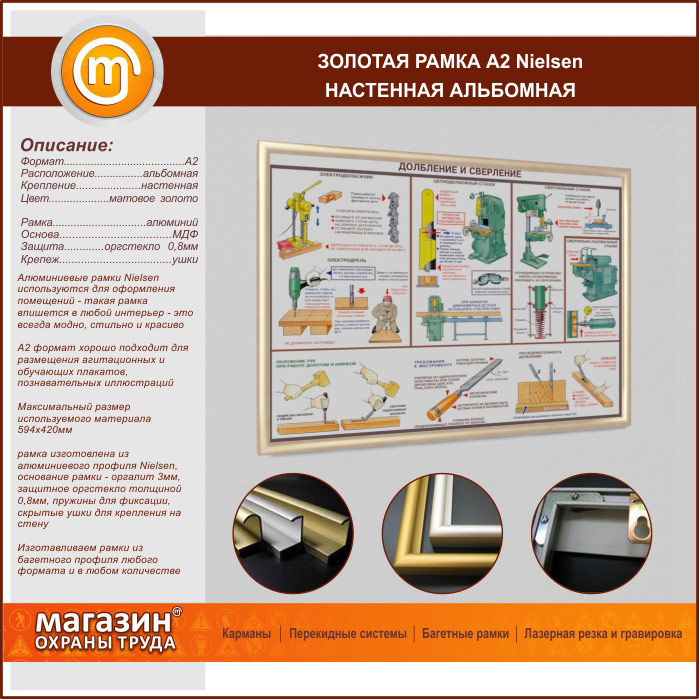Багетная настенная рамка «Nielsen» А2 формата, альбомная, матовое золото в Томске купить
