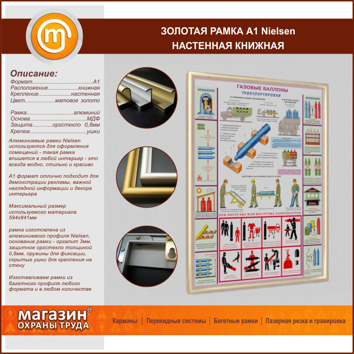 Багетная настенная рамка «Nielsen» А1 формата, книжная, матовое золото в Томске купить