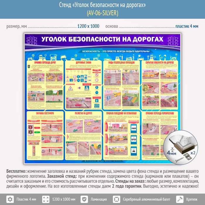 Стенд «Уголок безопасности на дорогах» (AV-06-SILVER) в Томске купить