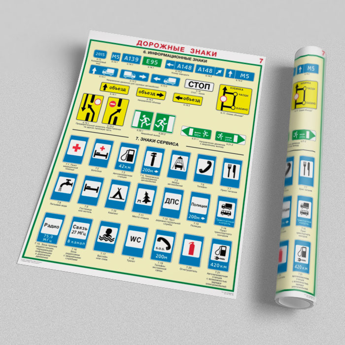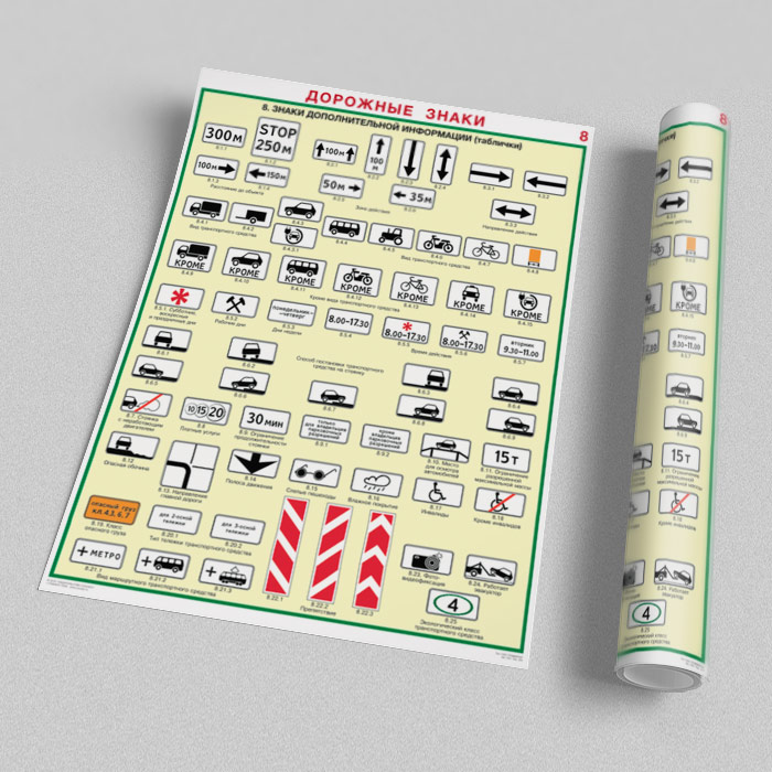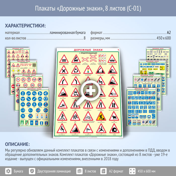 Плакаты «Дорожные знаки» (С-01, ламинированная бумага, А2, 8 листов) в Томске купить