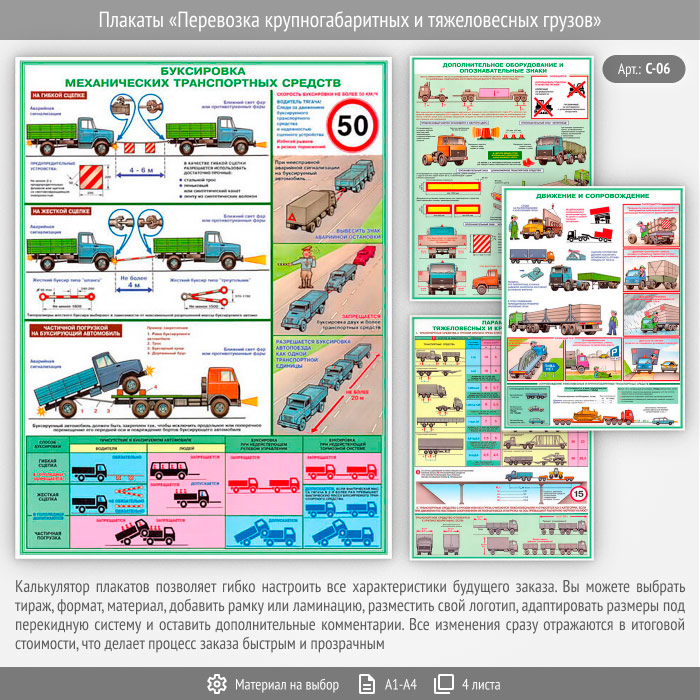Плакаты «Перевозка крупногабаритных и тяжеловесных грузов» (С-06, 4 листа) в Томске купить