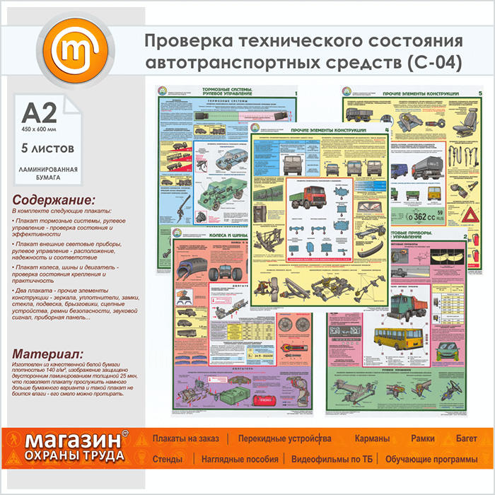 Плакаты «Проверка технического состояния автотранспортных средств» (С-04, ламинированная бумага, А2, 5 листов) в Томске купить