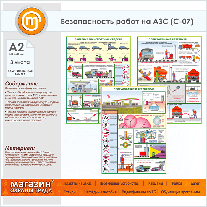 Плакаты «Безопасность работ на АЗС» (С-07, ламинированная бумага, А2, 3 листа) в Томске купить