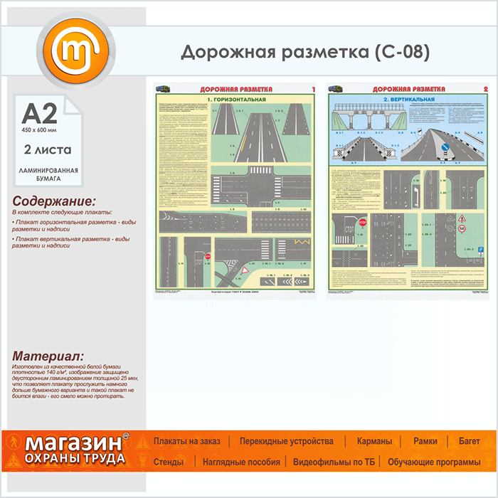 Плакаты «Дорожная разметка» (С-08, ламинированная бумага, А2, 2 листа) в Томске купить