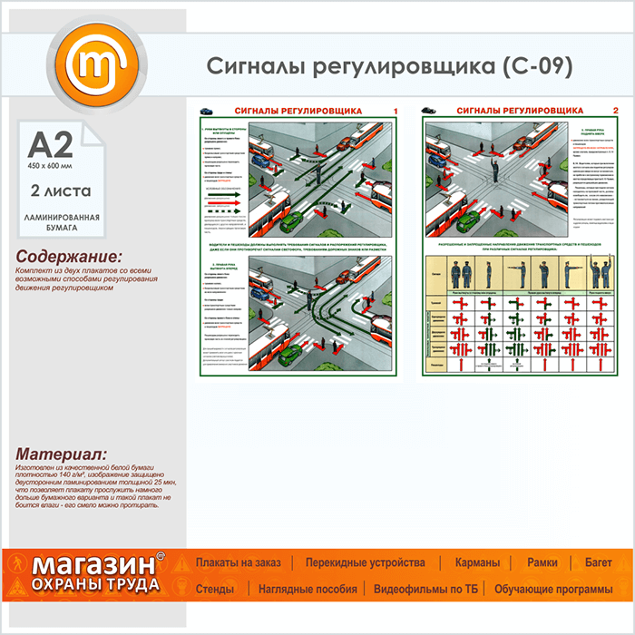 Плакаты «Сигналы регулировщика» (С-09, ламинированная бумага, А2, 2 листа) в Томске купить