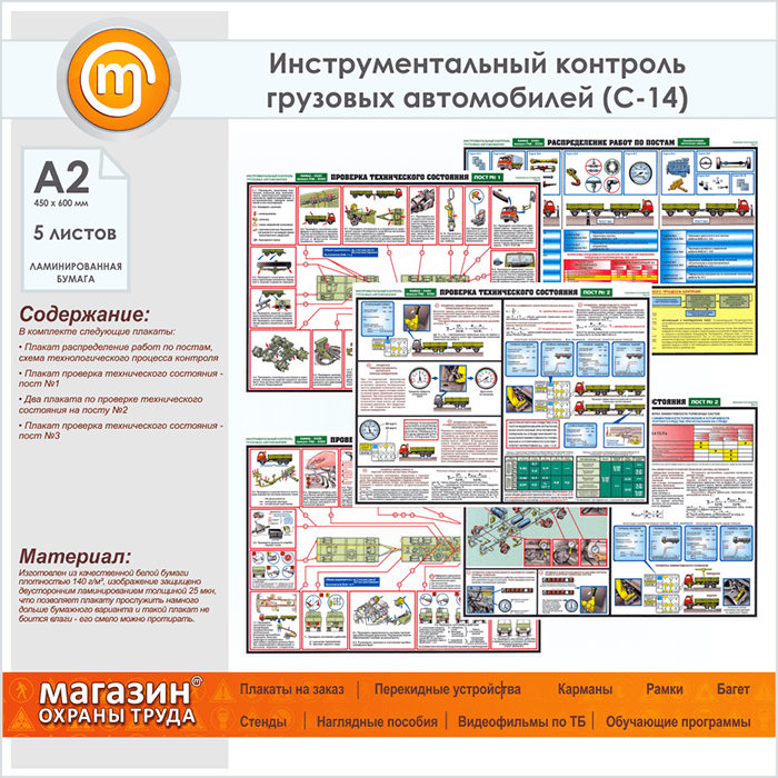 Плакаты «Инструментальный контроль грузовых автомобилей» (С-14, ламинированная бумага, А2, 5 листов) в Томске купить