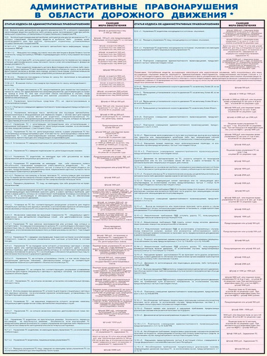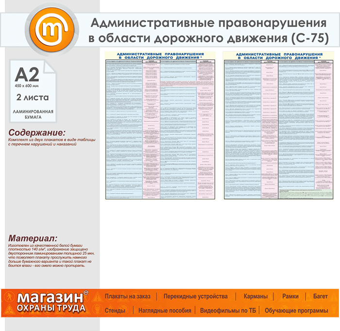 Плакаты «Административные правонарушения в области дорожного движения» (С-75, ламинированная бумага, А2, 2 листа) в Томске купить