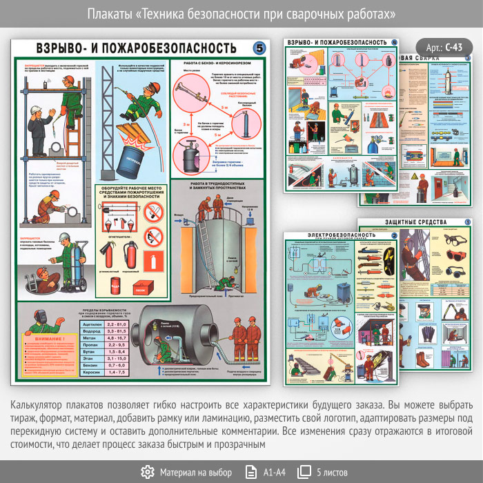 Плакаты «Техника безопасности при сварочных работах» (С-43, 5 листов) в Томске купить