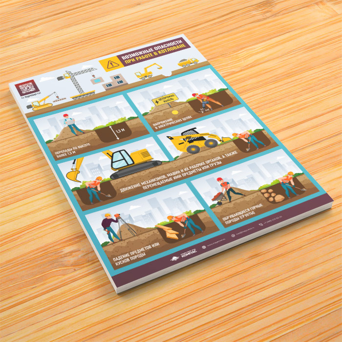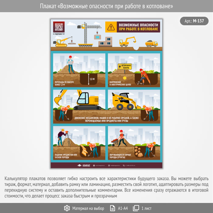 Плакат «Возможные опасности при работе в котловане» с QR (М-137, 1 лист) в Томске купить