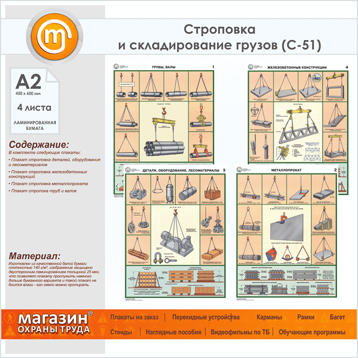 Плакаты «Строповка и складирование грузов» (С-51, ламинированная бумага, А2, 4 листа) в Томске купить