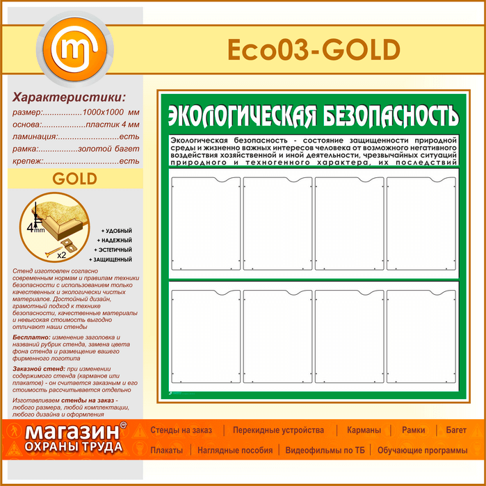 Стенд «Экологическая безопасность» с 8 карманами (ECO-03-GOLD) в Томске купить