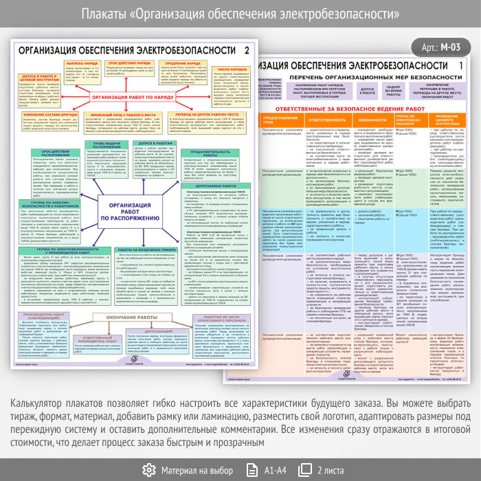 Плакаты «Организация обеспечения электробезопасности» (М-03, 2 листа) в Томске купить