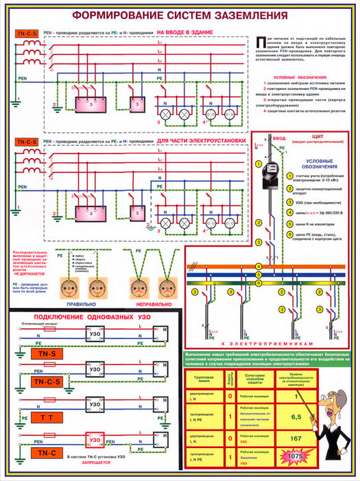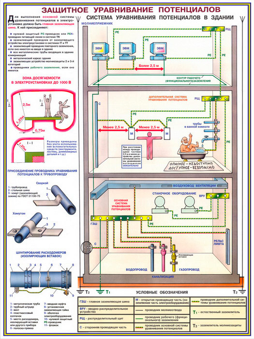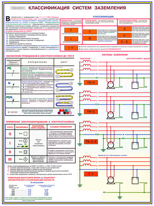 Плакаты «Заземление и защитные меры электробезопасности - напряжение до 1000В» (С-61, ламинированная бумага, А2, 4 листа) в Томске купить