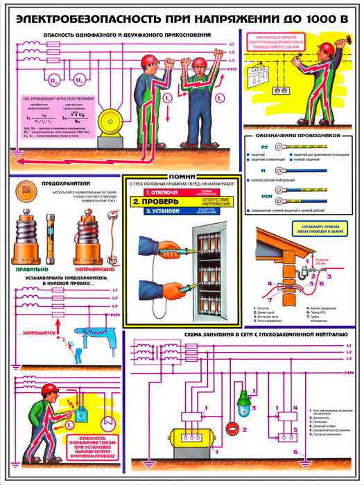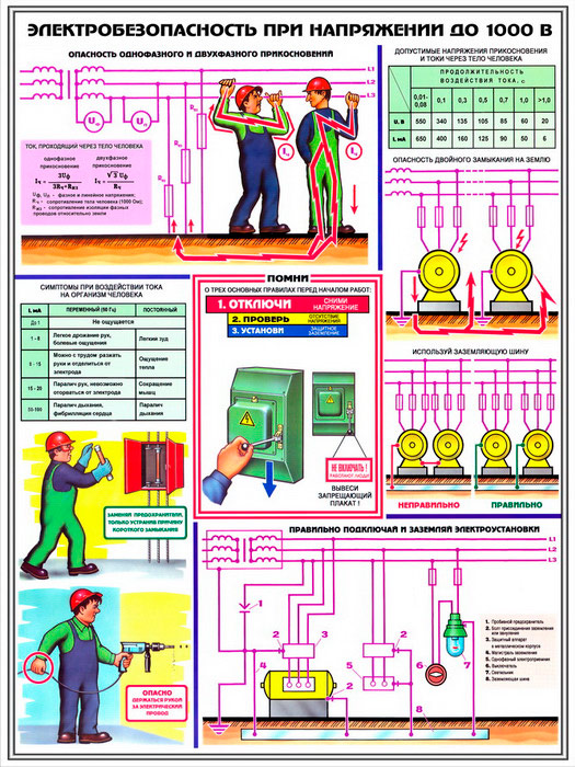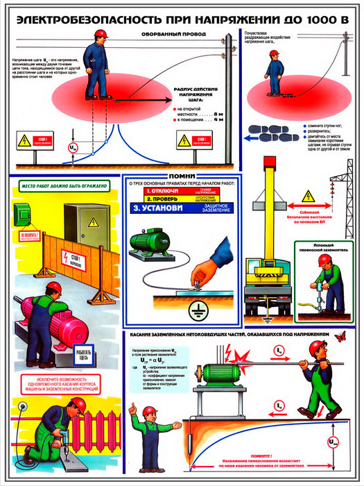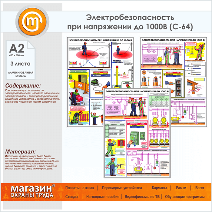 Плакаты «Электробезопасность при напряжении до 1000В» (С-64, ламинированная бумага, А2, 3 листа) в Томске купить