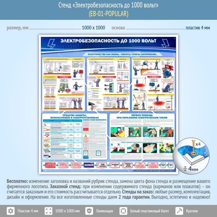 Стенд «Электробезопасность до 1000 вольт» (EB-01-POPULAR) в Томске купить