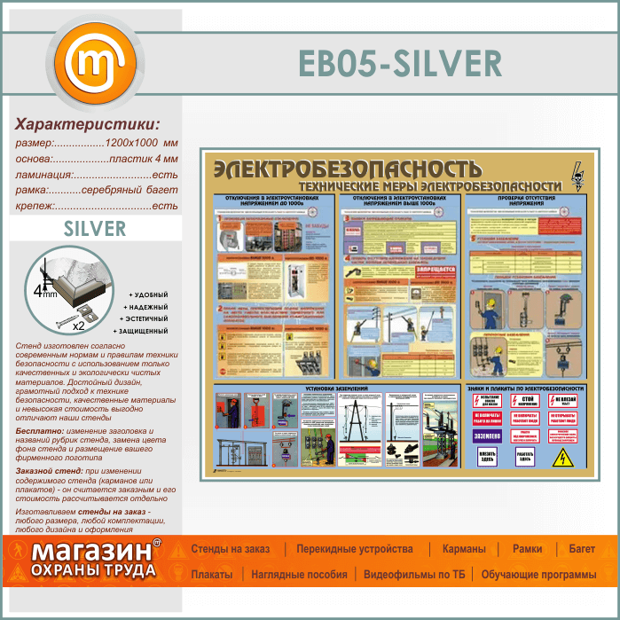 Стенд «Электробезопасность. Технические меры электробезопасности» (EB-05-SILVER) в Томске купить