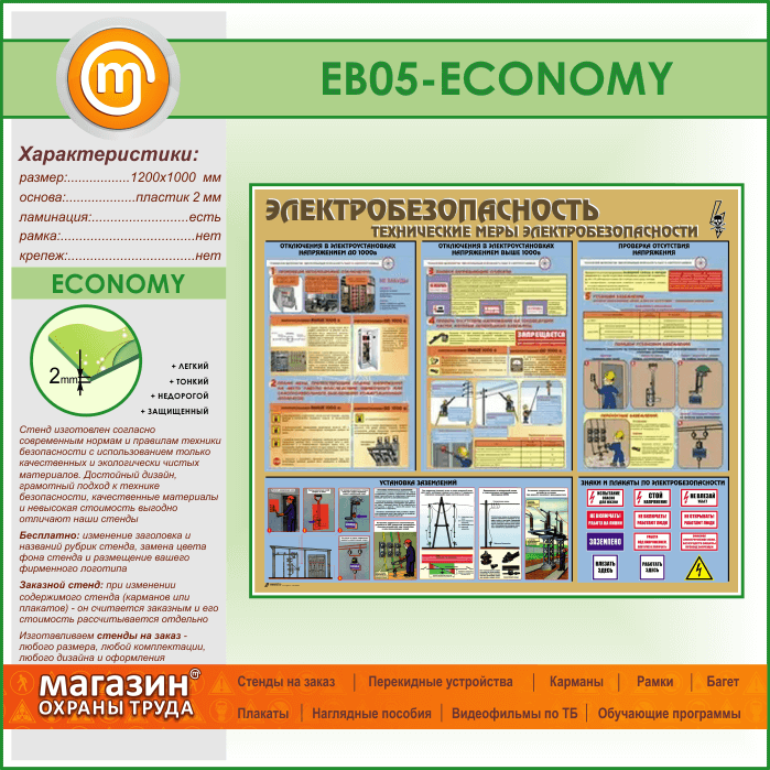 Стенд «Электробезопасность. Технические меры электробезопасности» (EB-05-ECONOMY) в Томске купить