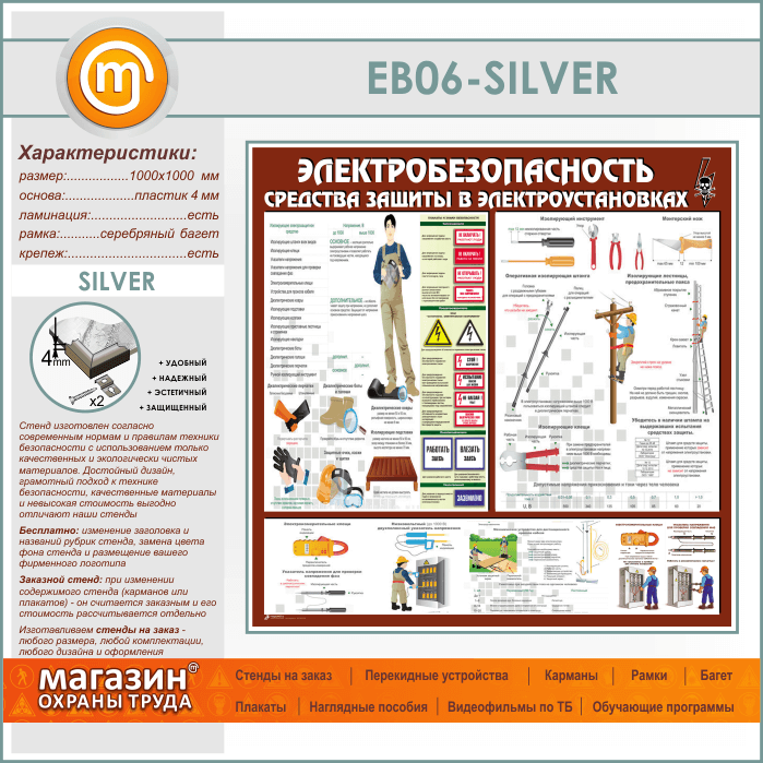 Стенд «Электробезопасность. Средства защиты в электроустановках» (EB-06-SILVER) в Томске купить