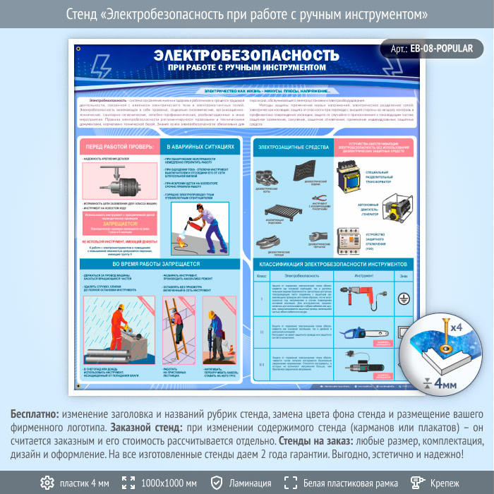 Стенд «Электробезопасность при работе с ручным инструментом» (EB-08-POPULAR) в Томске купить