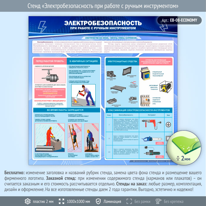Стенд «Электробезопасность при работе с ручным инструментом» (EB-08-ECONOMY) в Томске купить