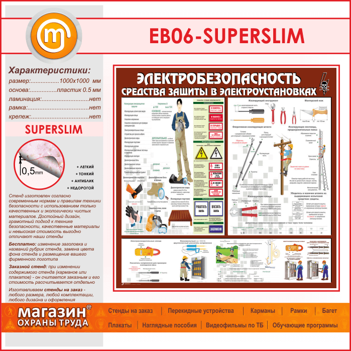 Стенд «Электробезопасность. Средства защиты в электроустановках» (EB-06-SUPERSLIM) в Томске купить