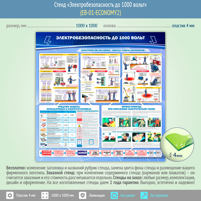 Стенд «Электробезопасность до 1000 вольт» (EB-01-ECONOMY2) в Томске купить