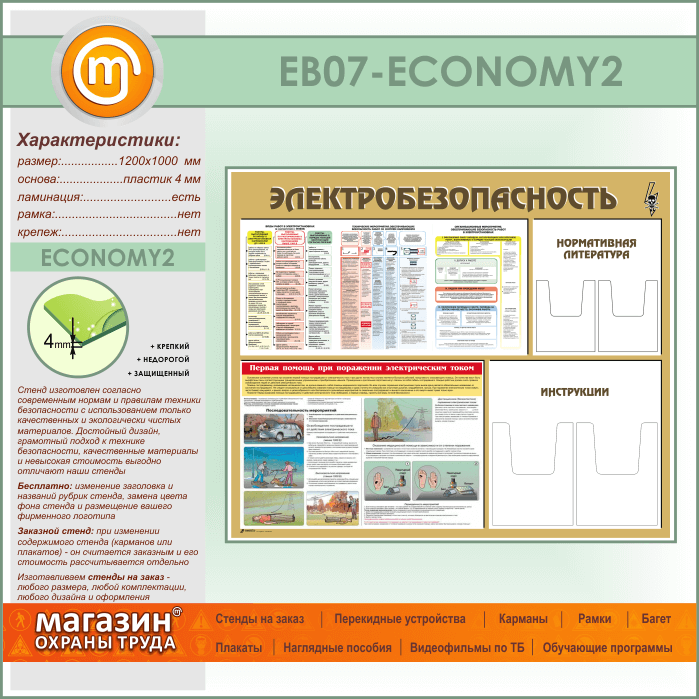 Стенд «Электробезопасность» с 4 объемными карманами (EB-07-ECONOMY2) в Томске купить