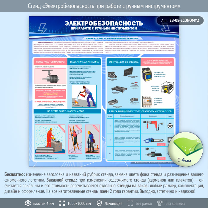 Стенд «Электробезопасность при работе с ручным инструментом» (EB-08-ECONOMY2) в Томске купить