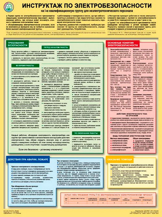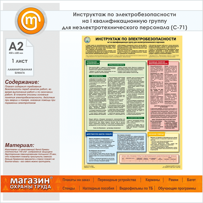 Плакат «Инструктаж по электробезопасности - на I квалификационную группу для неэлектротехнического персонала» (С-71, ламинированная бумага, А2, 1 лист) в Томске купить