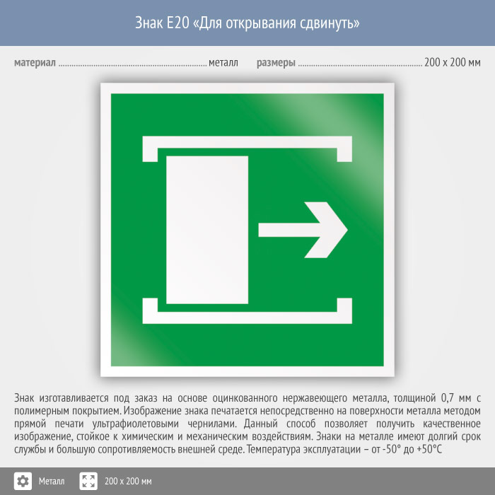 Знак E20 «Для открывания сдвинуть» (металл, 200х200 мм) в Томске купить