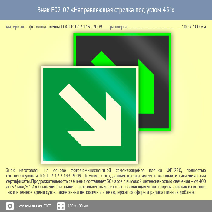 Знак E02-02 «Направляющая стрелка под углом 45°» (фотолюминесцентная пленка ГОСТ 34428-2018, 100х100 мм) в Томске купить