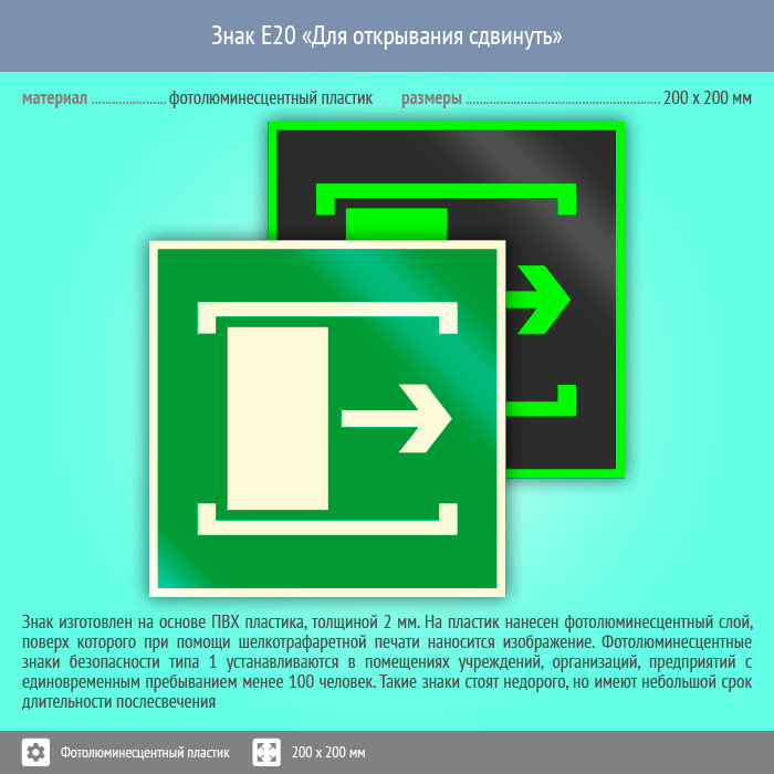 Знак E20 «Для открывания сдвинуть» (фотолюминесцентный пластик, 200х200 мм) в Томске купить