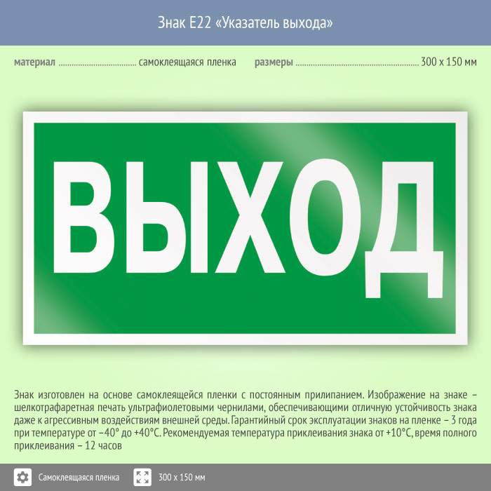 Знак E22 «Указатель выхода» (пленка, 300х150 мм) в Томске купить