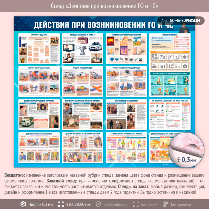 Стенд «Действия при возникновении ГО и ЧС» (GO-46-SUPERSLIM) в Томске купить